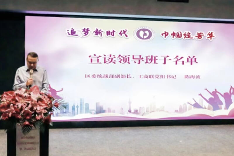 區(qū)委統(tǒng)戰(zhàn)部副部長(zhǎng)、工商聯(lián)黨組書記陳海波宣讀了當(dāng)選會(huì)長(zhǎng)、副會(huì)長(zhǎng)、秘書長(zhǎng)名單,南京銀橋國際生活廣場(chǎng)有限公司總經(jīng)理潘麗當(dāng)選為會(huì)長(zhǎng)。