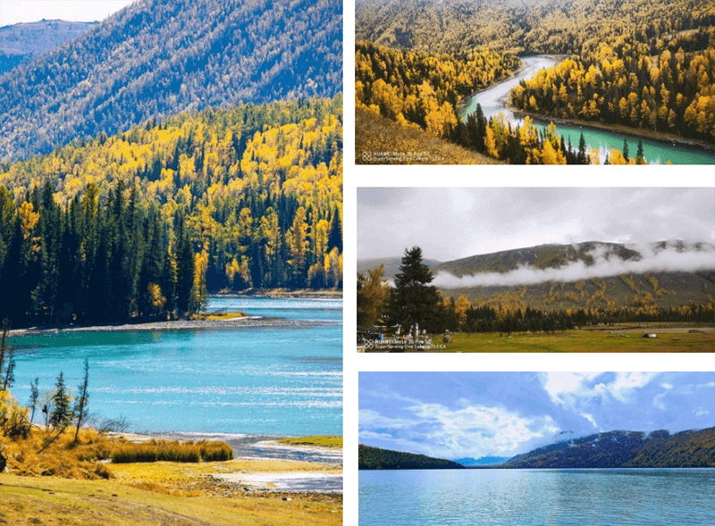 十月初的喀納斯,層林盡染,宛若童話(huà),只需一眼就能讓人魂?duì)繅?mèng)繞??{斯河沿著山谷蜿蜒,長(zhǎng)期受到?jīng)_刷侵蝕的河岸,造就了月亮灣、臥龍灣,以及神仙灣三大絕色美景。到了深秋,更似一幅巨大的水墨丹青。