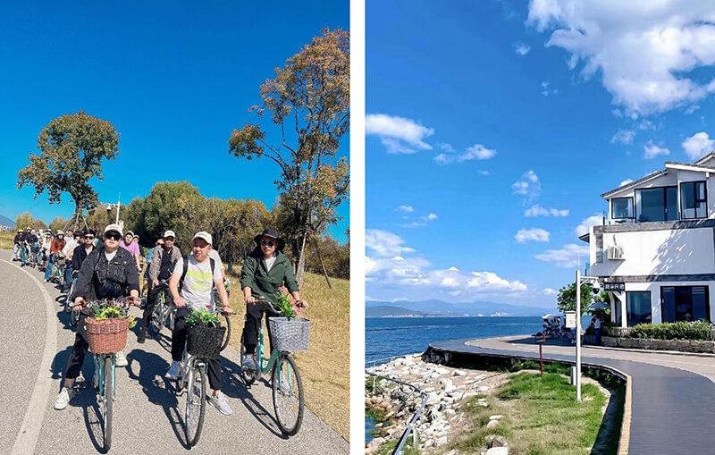 ↑旅游團(tuán)環(huán)繞洱海騎行
