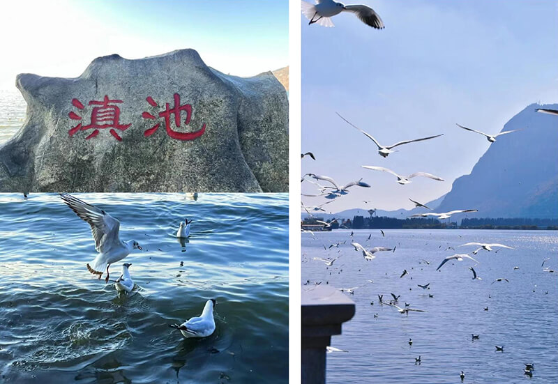 11月4日中午,旅行團(tuán)乘機(jī)順利抵達(dá)四季如春的昆明,乘車前往滇池大壩。每年11月至來年3月滇池海埂公園總會(huì)聚集成千上萬只來此過冬的紅嘴鷗,在湖面上翻飛的紅嘴鷗成為滇池冬季的一大景觀。