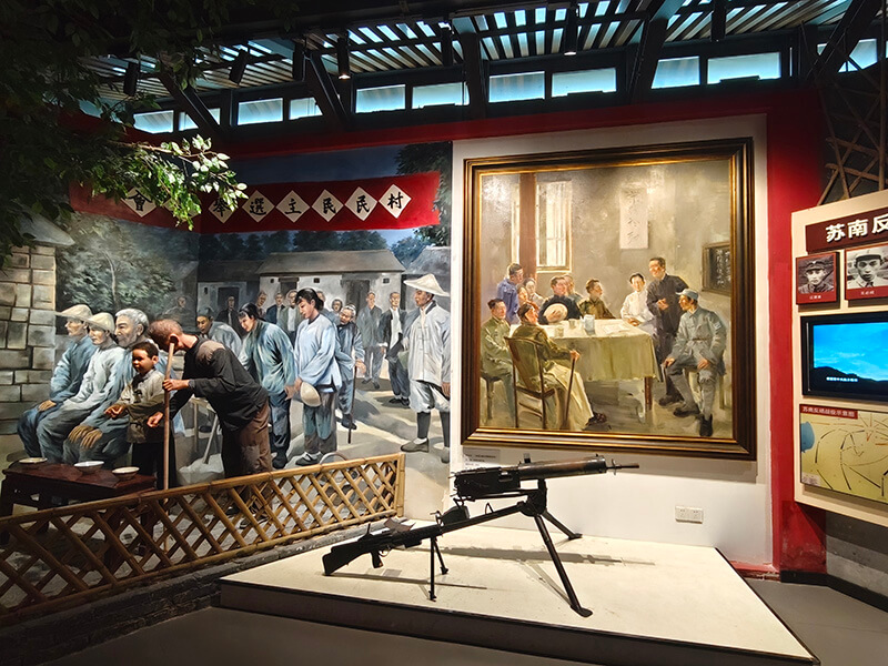 追尋一個(gè)個(gè)紅色印記,傾聽(tīng)一個(gè)個(gè)紅色故事。黨員們沿著青石板路步入李巷深處,參觀了中國(guó)新四軍歷史研究館、抗日同志紀(jì)念館、新四軍領(lǐng)導(dǎo)人舊居等。同志們或駐足觀看,或交流感悟,一個(gè)個(gè)真實(shí)場(chǎng)景、一件件珍貴文物、一張張歷史照片,彷佛將大家?guī)Щ亓四嵌纹D苦卓絕的崢嶸歲月,也讓大家對(duì)黨組織帶領(lǐng)人民開(kāi)展抗日斗爭(zhēng)的偉大歷程和光輝業(yè)績(jī)有了更加深入的了解。紅色李巷的“紅”,是革命斗爭(zhēng)的燎原星火,是先輩英烈的殷紅鮮血,是民族復(fù)興的火紅理想。