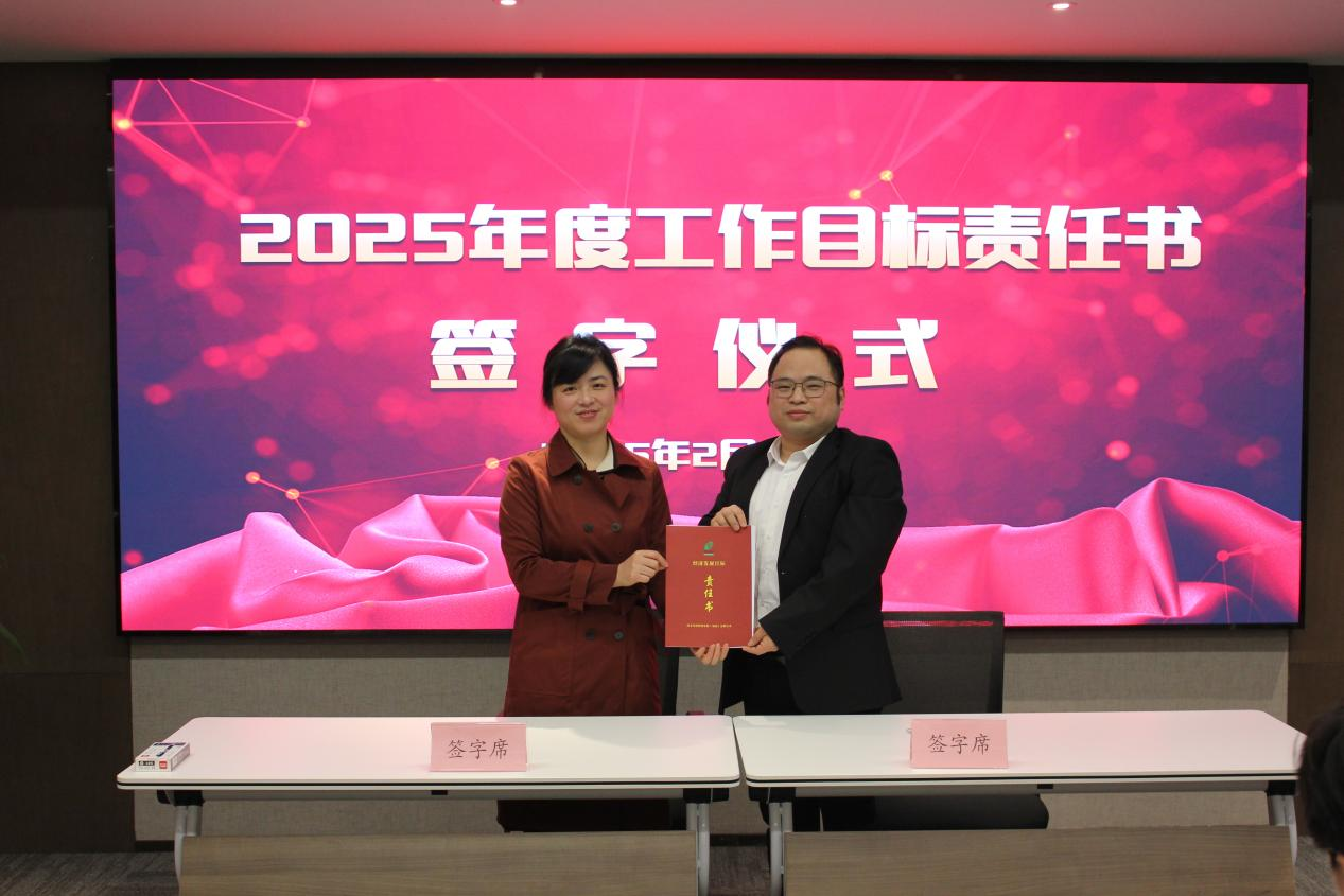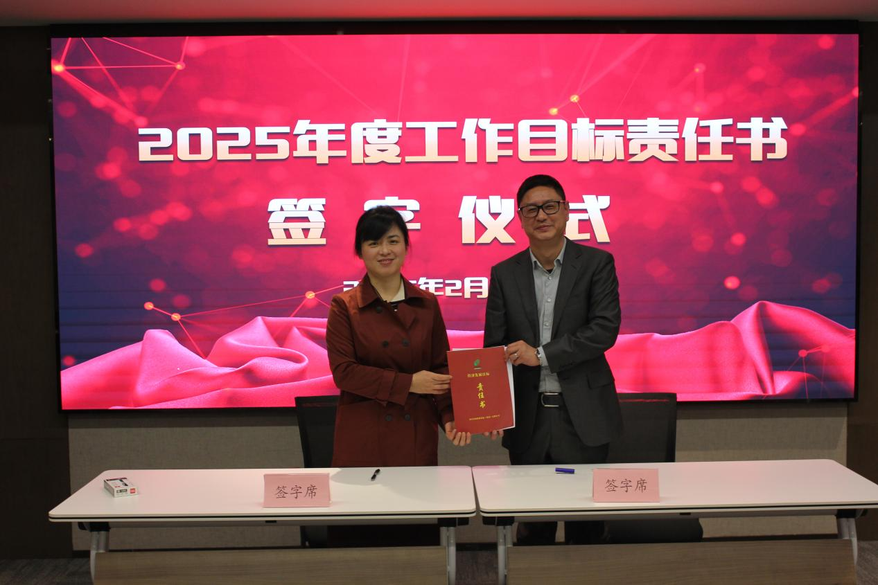 ↑副總經(jīng)理楊華女士同投資運營事業(yè)部有關責任人簽訂工作目標責任書
