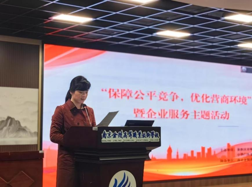 ? ? ? ? 3月12日,秦淮區(qū)中華門街道在南京金陵高等職業(yè)技術(shù)學(xué)校隆重舉辦以“保障公平競爭,優(yōu)化營商環(huán)境”為主題的企業(yè)服務(wù)活動(dòng)。南京市和秦淮區(qū)相關(guān)部門領(lǐng)導(dǎo)、法律金融專家及百余位企業(yè)家齊聚一堂,共同探討政策紅利、共謀發(fā)展新篇?,F(xiàn)場互動(dòng)頻繁,內(nèi)容豐富,為轄區(qū)企業(yè)注入了強(qiáng)心劑!南京蘇商集團(tuán)副總潘麗女士應(yīng)邀出席活動(dòng),并作為企業(yè)代表做了發(fā)言。
