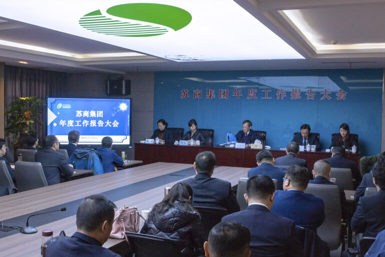 12月31日14:30,蘇商集團(tuán)2019年度工作報(bào)告大會(huì)在華智園會(huì)議中心隆重召開。集團(tuán)貿(mào)易部、大匯盈商業(yè)、河南特車和金城軌道的代表匯報(bào)了2019年工作和2020年工作計(jì)劃;蘇商集團(tuán)陳家俊董事長作2019年工作報(bào)告,對(duì)集團(tuán)2019年的工作作了總結(jié),詳細(xì)地闡述了集團(tuán)2020年三大發(fā)展戰(zhàn)略,明確了集團(tuán)2020年奮斗目標(biāo),部署了集團(tuán)2020年主要工作。
